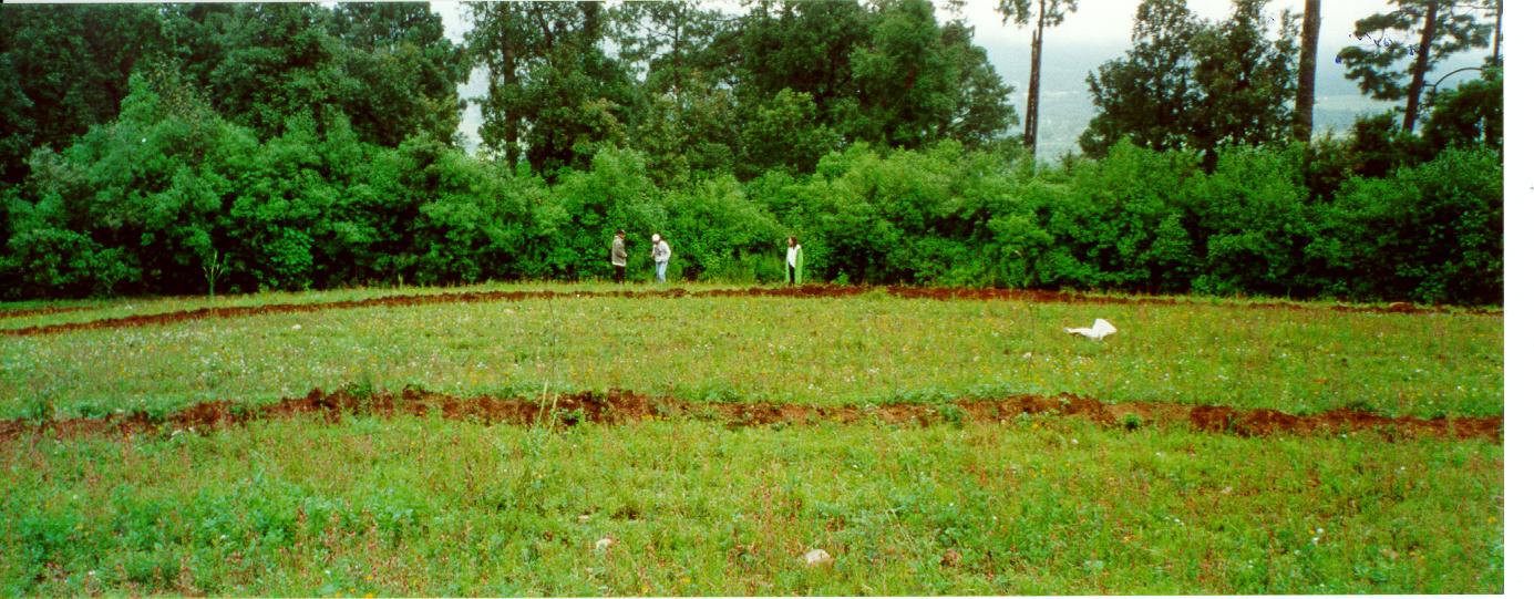 | agricultura de temporal | Prácticas de protección del suelo con líneas de frutales y zanjas - bordo. |