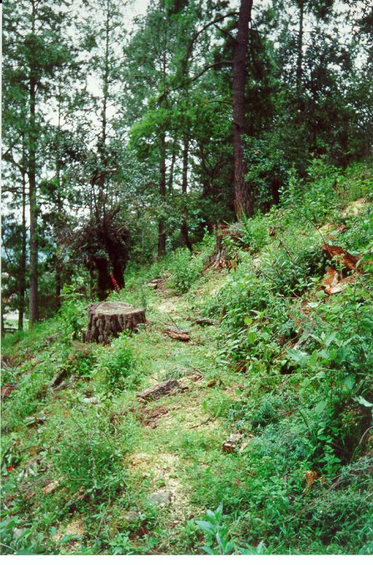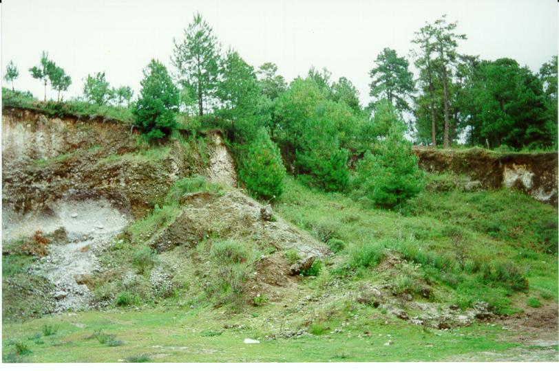 | bosque de pino - encino | Punto en el banco de materiales. Bosque muy perturbado; extracción de madera con reforestación, pastoreo y agricultura. |