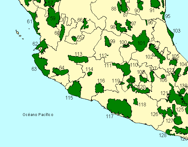 | Conabio » Regionalización » Regiones terrestres prioritarias » Mapa » Región centro |