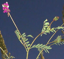 Hojas: Alternas, de hasta 5 cm de largo, compuestas por 4 a 11 pares de hojillas (llamadas foliolos) opuestas y una en el ápice, angostas, variables en su forma.