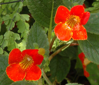 Tiene flores con un pequeño espolón o saco en la base; las flores generalmente son rojas y amarillas y siempre tienen manchas en la garganta. La flor abierta (el limbo) tiene 1.5-2.5 cm en diámetro.