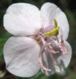 Flores: Con pedicelos (soporte individual de la flor) de 3 a 9 mm de largo, moderadamente setoso-glandular (con pelos muy rígidos y puntiagudos); hipantio (porción basal de las partes florales cuando se encuentran unidas alrededor del ovario) de 2.5 a 4.5 mm de largo por 2 a 3.2 mm de ancho, esparcidamente setoso-glandular; lóbulos del cáliz de 4 a 6.5 mm de largo, triangulares a estrechamente triangulares, agudos y usualmente con una seta (pelo largo y regido) terminal, rojo-rosada a verde; pétalos cerca de 8 mm de largo, rosados a blancos; estambres largos con filamentos de 5 a 6 mm de largo, rosados o amarillos; anteras de 3.5 a 4.5 mm de largo, blancas o rosadas; tejido conectivo con prolongaciones de 2.5 a 3 mm de largo rosadas o amarillas; apéndices cerca de 2 mm de largo, amarillos; estambres cortos con filamentos de 4.5 a 6 mm de largo, rosados o amarillos; anteras de 3 a 3.5 mm de largo, amarillas; apéndices rojos o rosados a pardos; ovario con escamas triangulares, densamente ciliados; estilo cerca de 7 mm de largo, rosado.