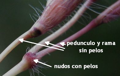 inflorescencia (pedúnculo) no tiene pelos, pero los nudos sí los tienen