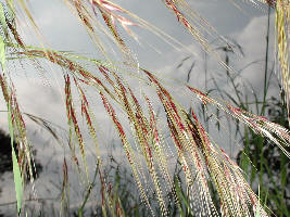 Espiguillas/Flores: Espiguillas con un solo flósculo que se desarticula por encima de las glumas; glumas iguales o subiguales de 4 a 7 mm de largo, color verdoso o purpúreo; flósculo tan largo o menor que las glumas, purpúreo, piloso, con una arista de 12 a 18 mm de largo. Las flores son muy pequeñas y se encuentran cubiertas por una serie de brácteas, algunas de ellas presentan aristas.