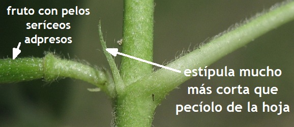 Tallo: Herbácea, pero leñoso en la base, tallos jóvenes con pelitos cortos de menos de 1 mm que se caen al madurar.