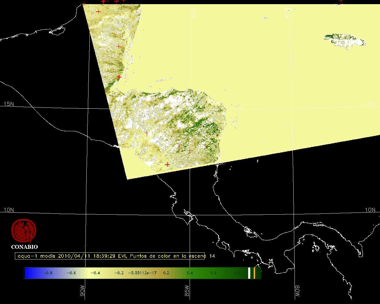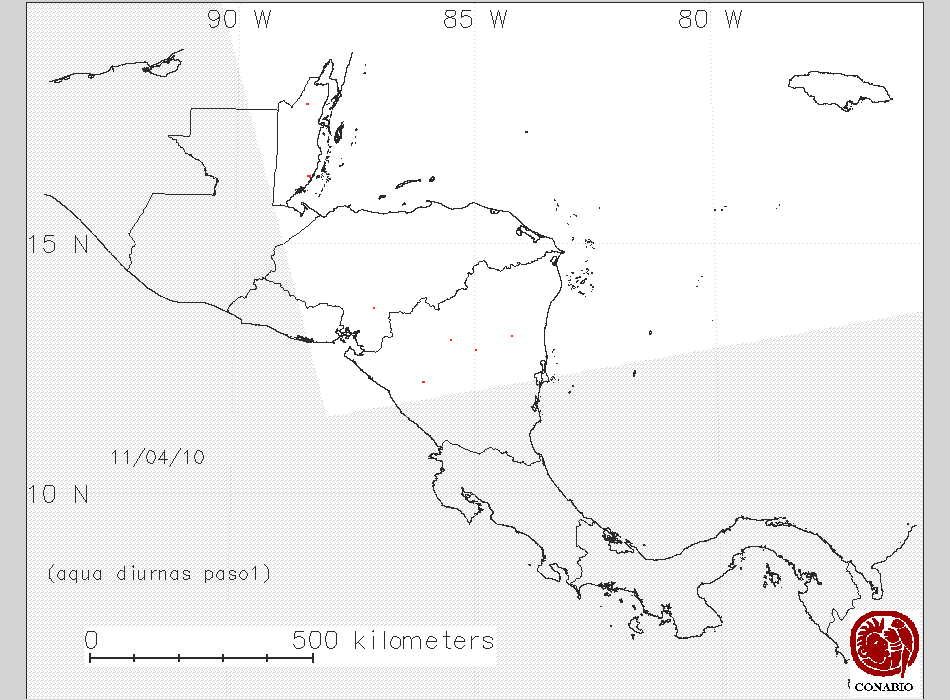 Se considera como punto de calor al elemento espacial mínimo de la imagen (pixel) que reporta una temperatura elevada. Para las imágenes diurnas la temperatura mínima considera es de 42C y para las imágenes nocturnas es de 25C. |