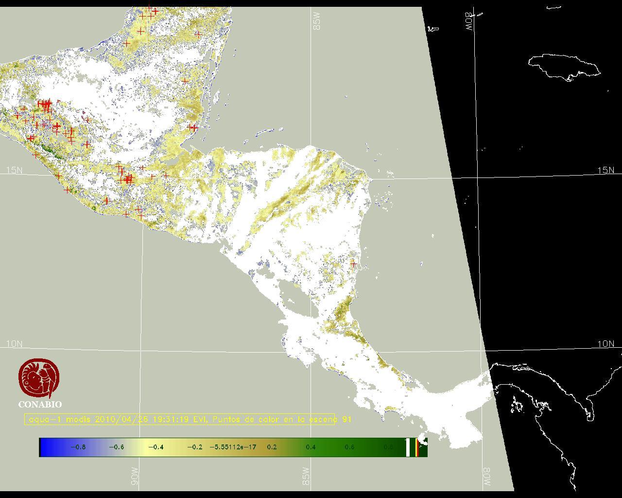 Se considera como punto de calor al elemento espacial mínimo de la imagen (pixel) que reporta una temperatura elevada. Para las imágenes diurnas la temperatura mínima considera es de 42C y para las imágenes nocturnas es de 25C. |