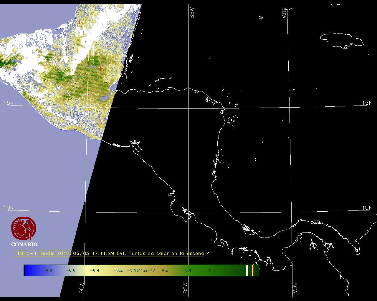 Se considera como punto de calor al elemento espacial mínimo de la imagen (pixel) que reporta una temperatura elevada. Para las imágenes diurnas la temperatura mínima considera es de 42C y para las imágenes nocturnas es de 25C. |