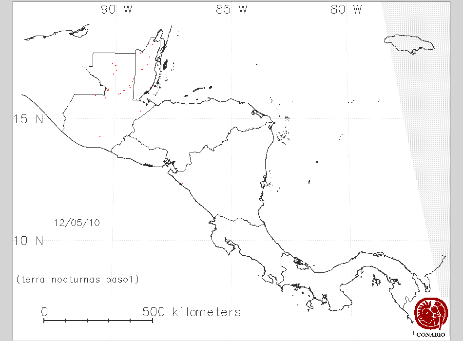 Se considera como punto de calor al elemento espacial mínimo de la imagen (pixel) que reporta una temperatura elevada. Para las imágenes diurnas la temperatura mínima considera es de 42C y para las imágenes nocturnas es de 25C. |