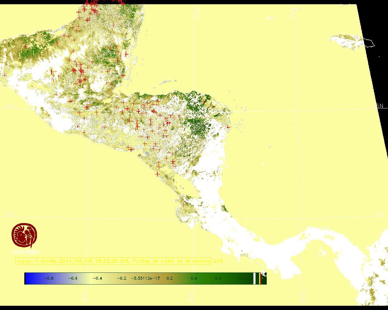 Se considera como punto de calor al elemento espacial mínimo de la imagen (pixel) que reporta una temperatura elevada. Para las imágenes diurnas la temperatura mínima considera es de 42C y para las imágenes nocturnas es de 25C. |