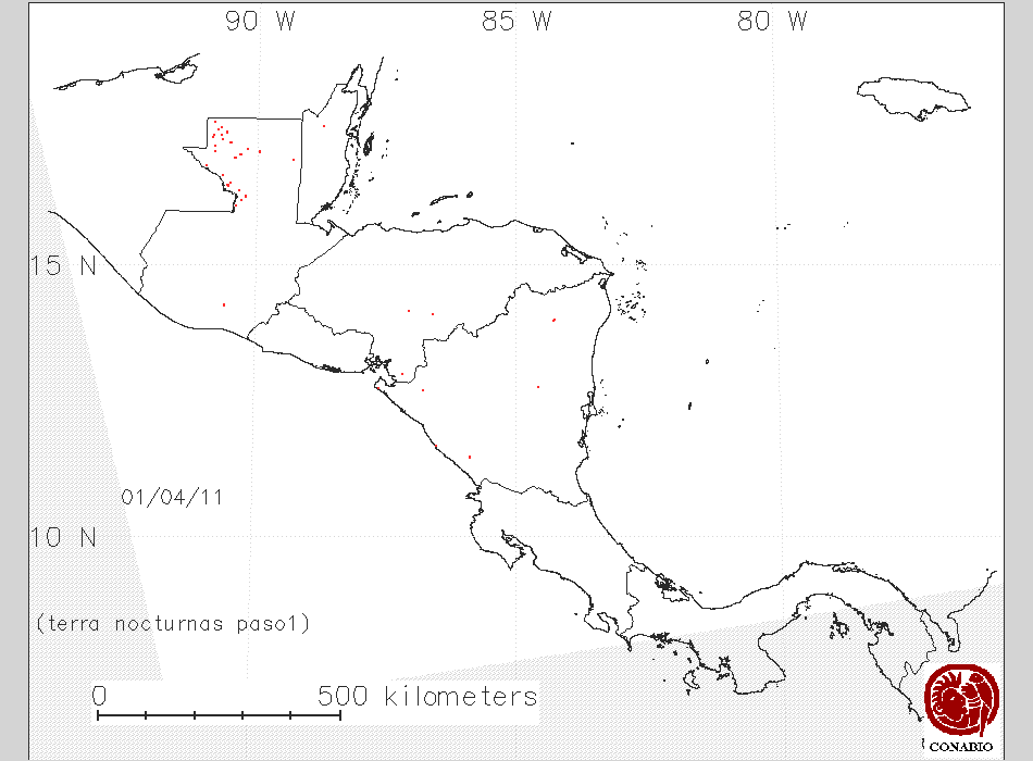 Se considera como punto de calor al elemento espacial mínimo de la imagen (pixel) que reporta una temperatura elevada. Para las imágenes diurnas la temperatura mínima considera es de 42C y para las imágenes nocturnas es de 25C. |