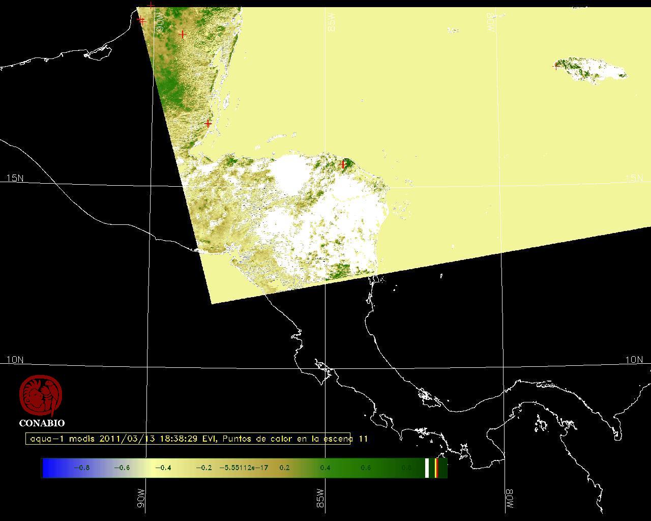 Se considera como punto de calor al elemento espacial mínimo de la imagen (pixel) que reporta una temperatura elevada. Para las imágenes diurnas la temperatura mínima considera es de 42C y para las imágenes nocturnas es de 25C. |