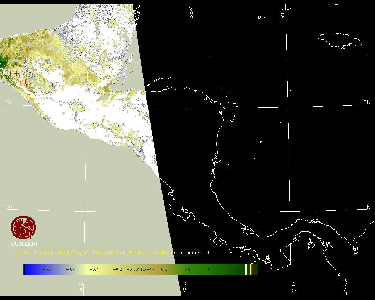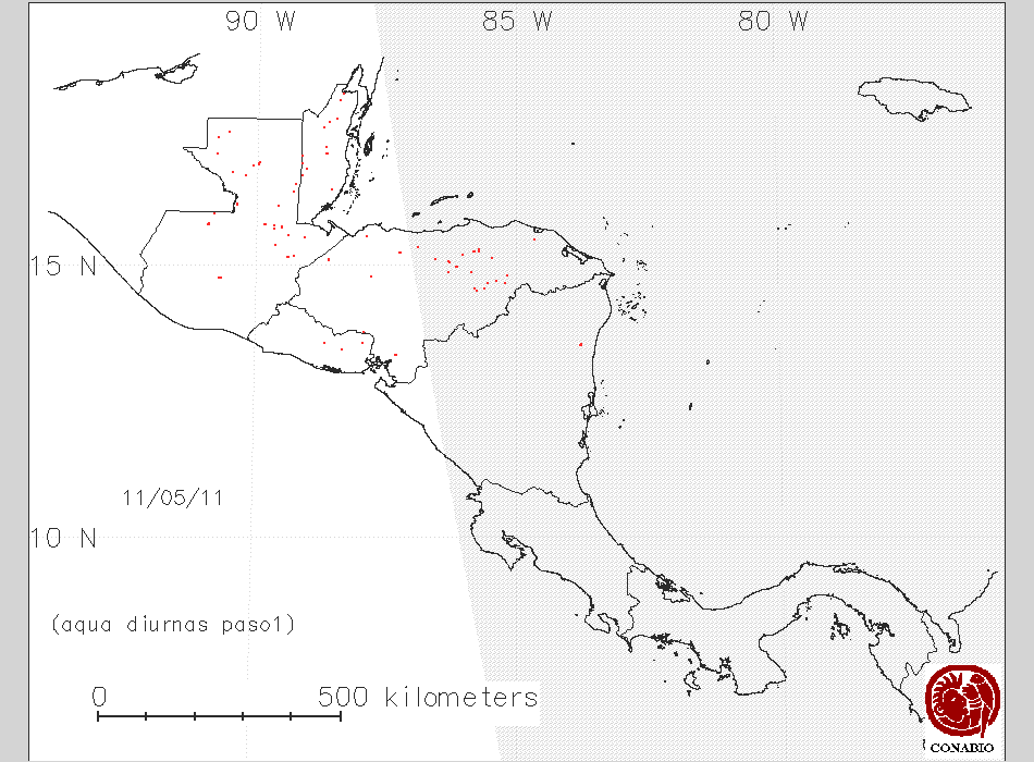 Se considera como punto de calor al elemento espacial mínimo de la imagen (pixel) que reporta una temperatura elevada. Para las imágenes diurnas la temperatura mínima considera es de 42C y para las imágenes nocturnas es de 25C. |