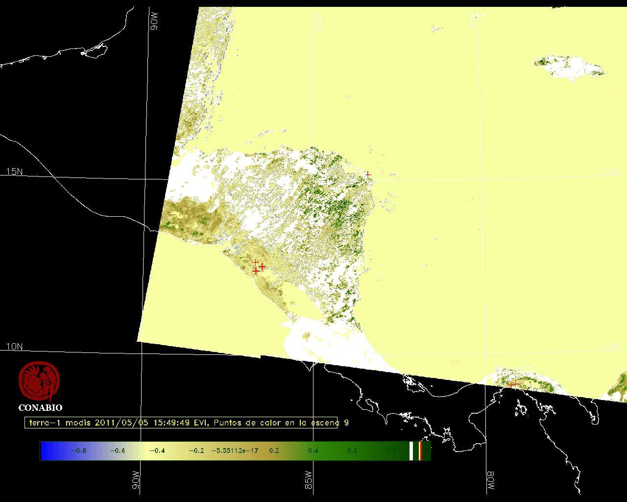 Se considera como punto de calor al elemento espacial mínimo de la imagen (pixel) que reporta una temperatura elevada. Para las imágenes diurnas la temperatura mínima considera es de 42C y para las imágenes nocturnas es de 25C. |