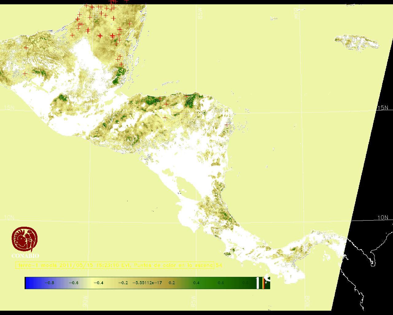 Se considera como punto de calor al elemento espacial mínimo de la imagen (pixel) que reporta una temperatura elevada. Para las imágenes diurnas la temperatura mínima considera es de 42C y para las imágenes nocturnas es de 25C. |