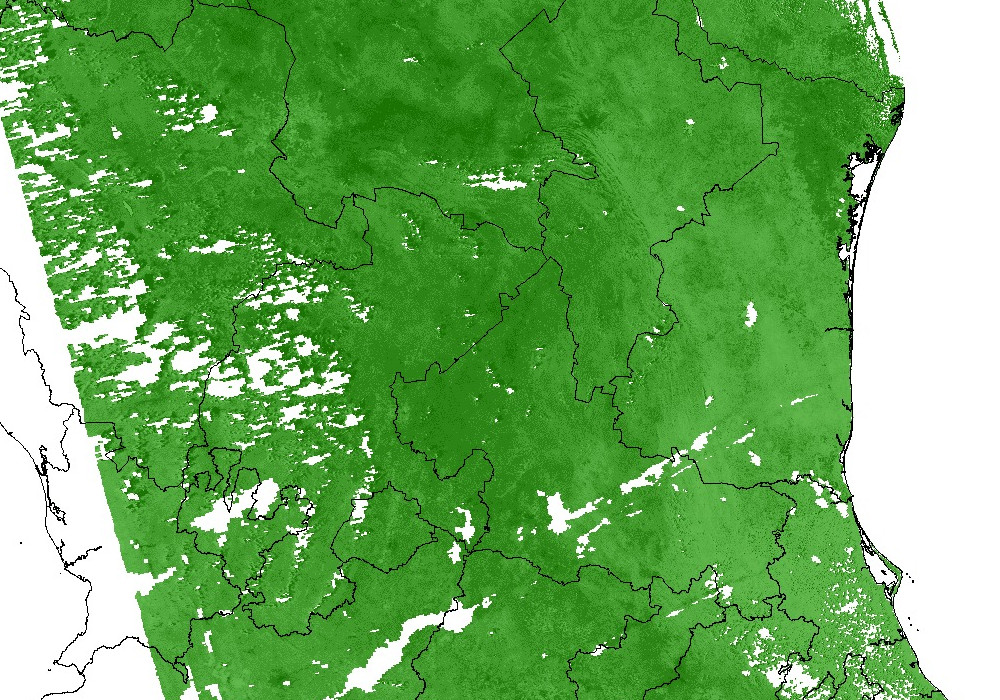 Los valores del índice van de -1 a 1, entre más cercano al valor 1 la vegetación presenta mayor vigor. Los índices de vegetación son utilizados para conocer el comportamiento de la vegetación tanto espacial como temporal. |
