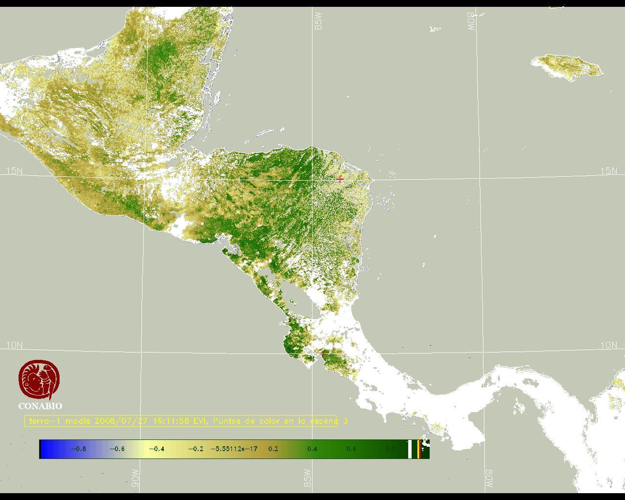 Los valores del índice van de -1 a 1, entre más cercano al valor 1 la vegetación presenta mayor vigor. Los índices de vegetación son utilizados para conocer el comportamiento de la vegetación tanto espacial como temporal. |