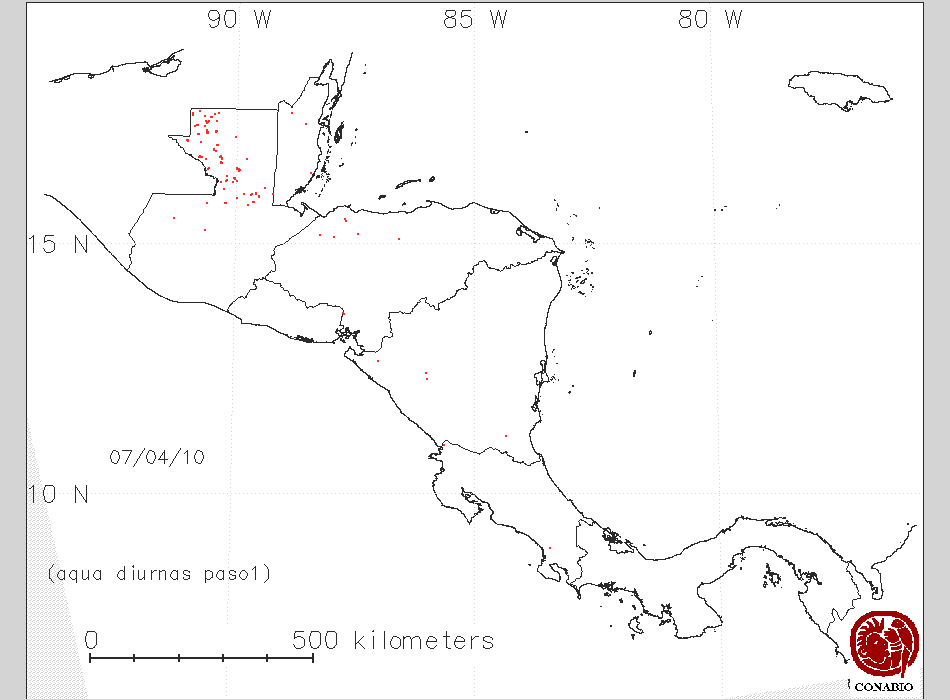 Se considera como punto de calor al elemento espacial mínimo de la imagen (pixel) que reporta una temperatura elevada. Para las imágenes diurnas la temperatura mínima considera es de 42C y para las imágenes nocturnas es de 25C. |