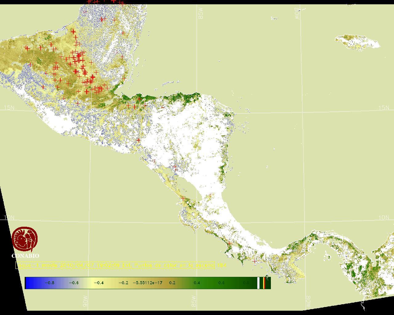 Los valores del índice van de -1 a 1, entre más cercano al valor 1 la vegetación presenta mayor vigor. Los índices de vegetación son utilizados para conocer el comportamiento de la vegetación tanto espacial como temporal. |