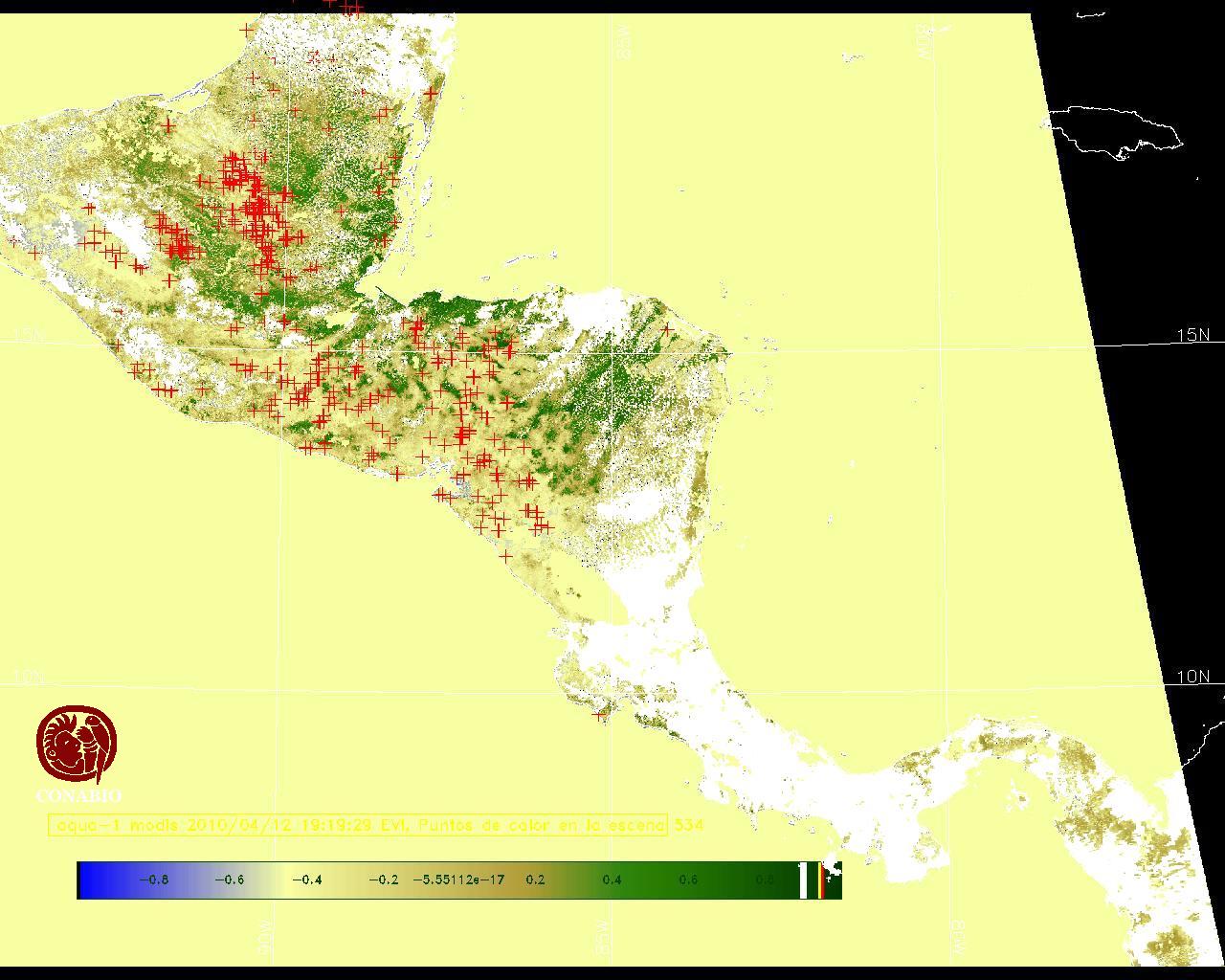Se considera como punto de calor al elemento espacial mínimo de la imagen (pixel) que reporta una temperatura elevada. Para las imágenes diurnas la temperatura mínima considera es de 42C y para las imágenes nocturnas es de 25C. |
