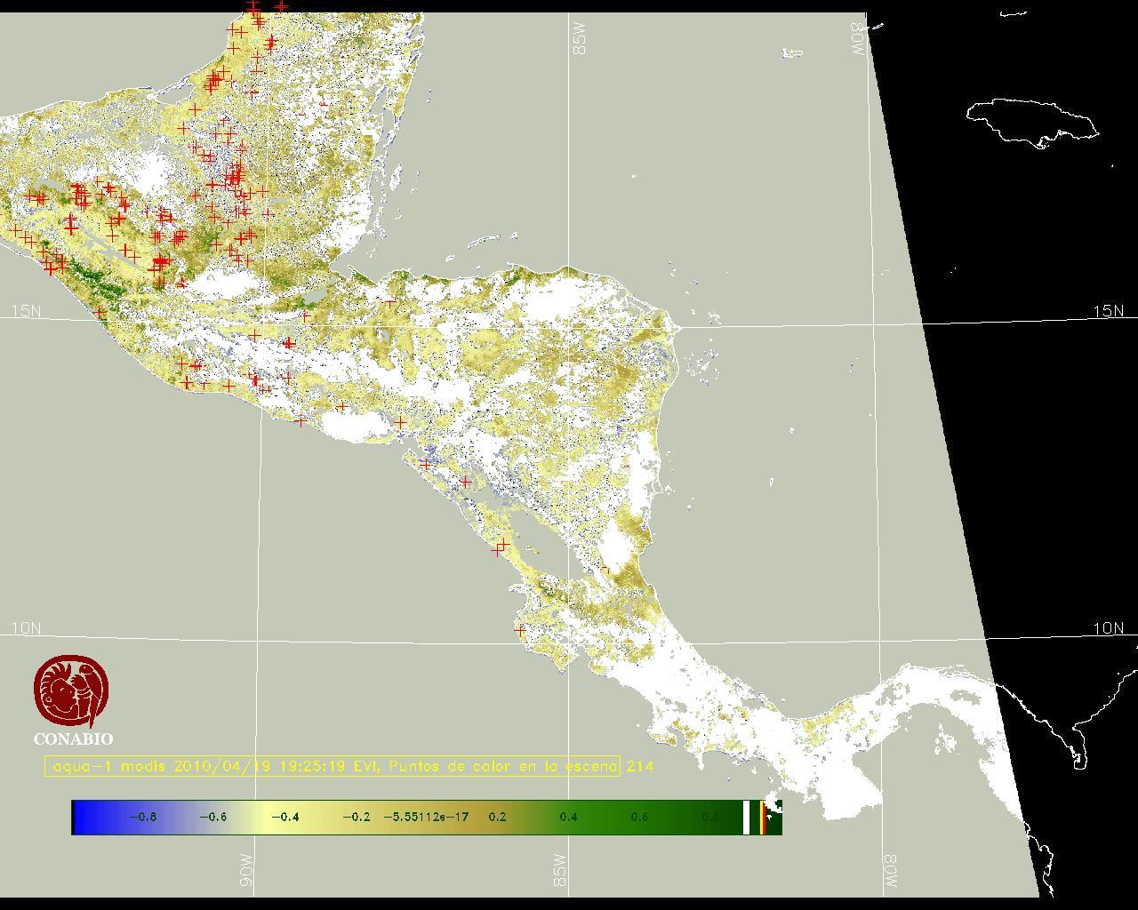 Se considera como punto de calor al elemento espacial mínimo de la imagen (pixel) que reporta una temperatura elevada. Para las imágenes diurnas la temperatura mínima considera es de 42C y para las imágenes nocturnas es de 25C. |