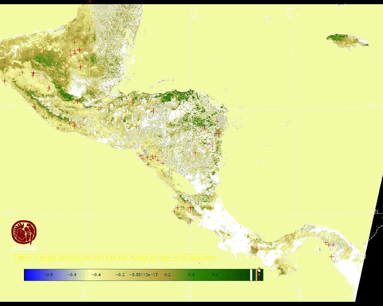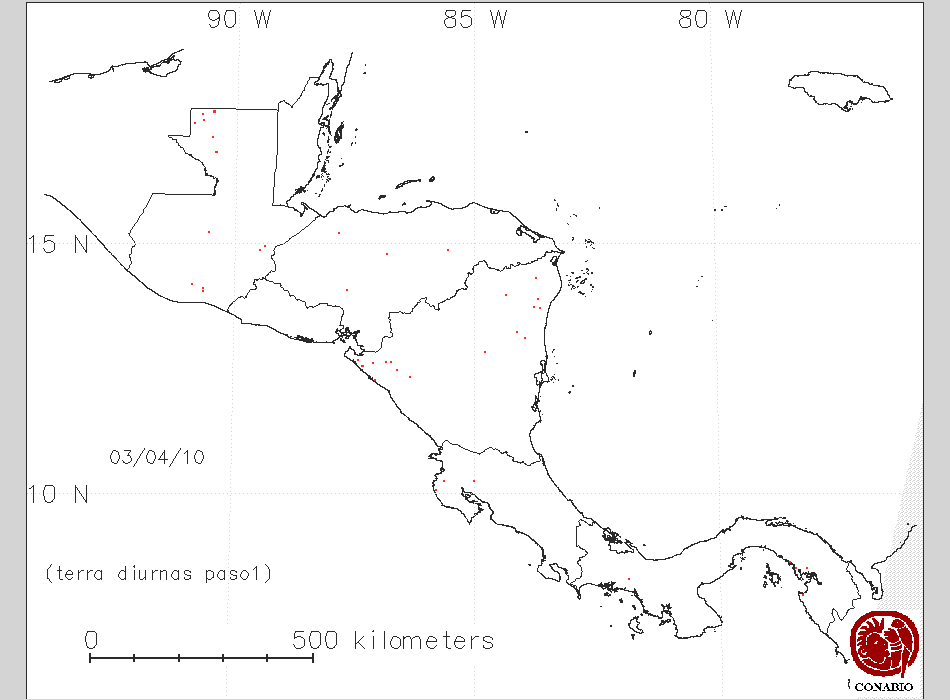 Se considera como punto de calor al elemento espacial mínimo de la imagen (pixel) que reporta una temperatura elevada. Para las imágenes diurnas la temperatura mínima considera es de 42C y para las imágenes nocturnas es de 25C. |