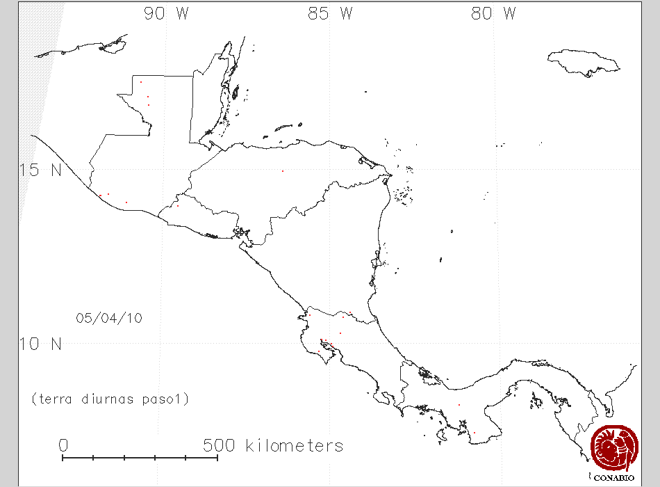 Se considera como punto de calor al elemento espacial mínimo de la imagen (pixel) que reporta una temperatura elevada. Para las imágenes diurnas la temperatura mínima considera es de 42C y para las imágenes nocturnas es de 25C. |