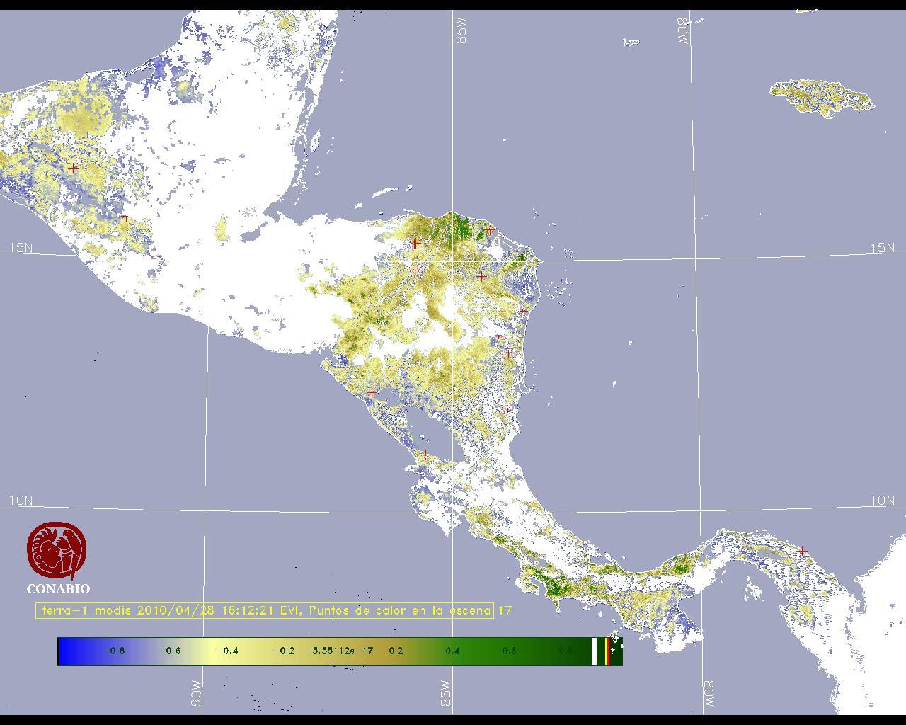 Los valores del índice van de -1 a 1, entre más cercano al valor 1 la vegetación presenta mayor vigor. Los índices de vegetación son utilizados para conocer el comportamiento de la vegetación tanto espacial como temporal. |
