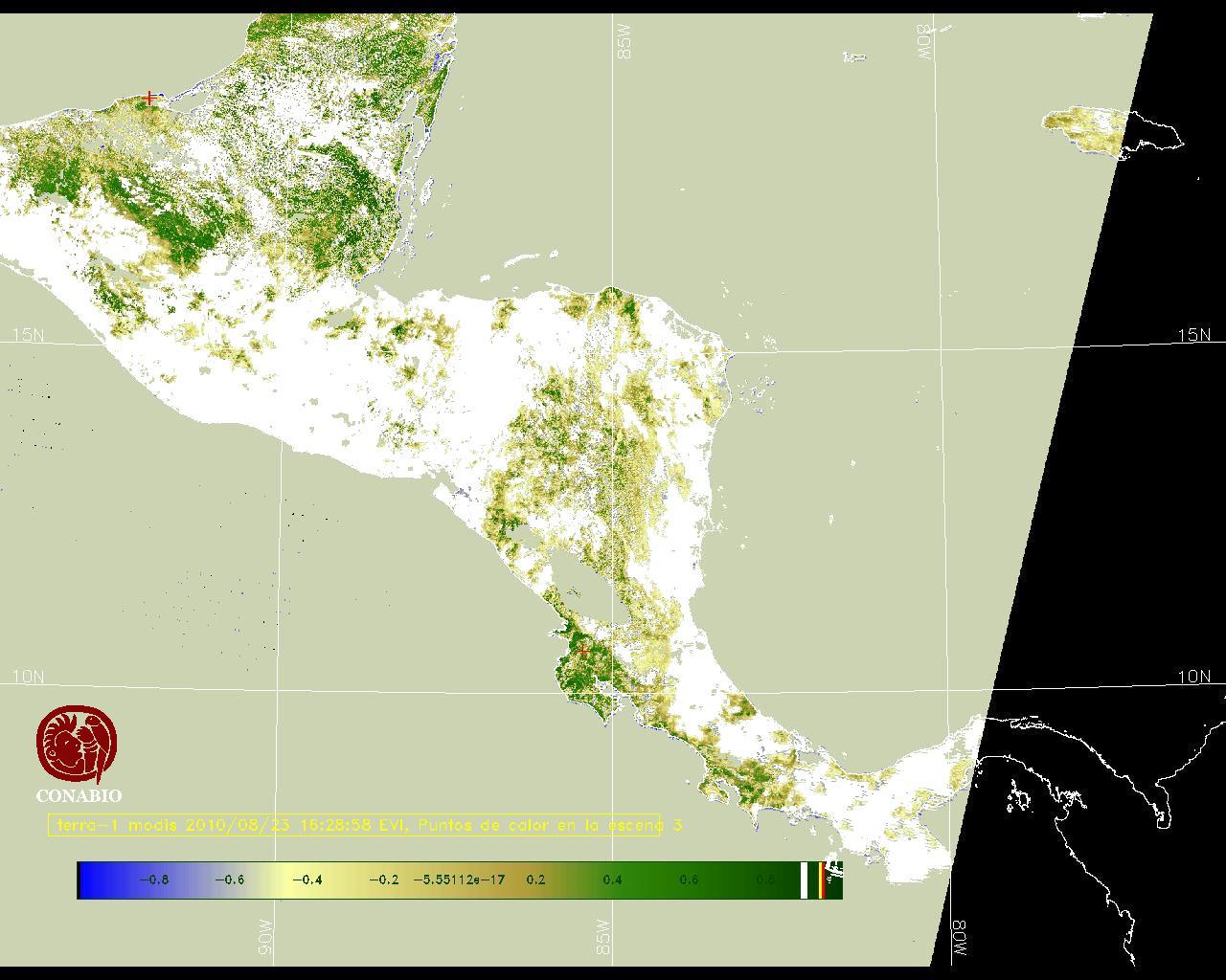 Los valores del índice van de -1 a 1, entre más cercano al valor 1 la vegetación presenta mayor vigor. Los índices de vegetación son utilizados para conocer el comportamiento de la vegetación tanto espacial como temporal. |
