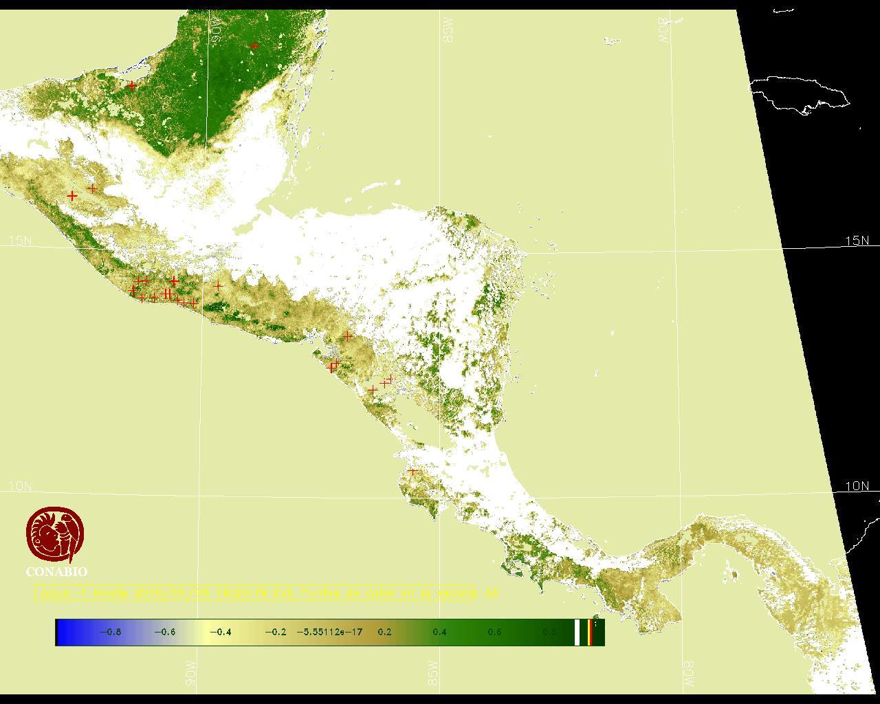 Los valores del índice van de -1 a 1, entre más cercano al valor 1 la vegetación presenta mayor vigor. Los índices de vegetación son utilizados para conocer el comportamiento de la vegetación tanto espacial como temporal. |