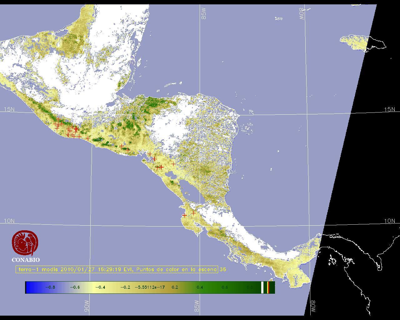 Se considera como punto de calor al elemento espacial mínimo de la imagen (pixel) que reporta una temperatura elevada. Para las imágenes diurnas la temperatura mínima considera es de 42C y para las imágenes nocturnas es de 25C. |