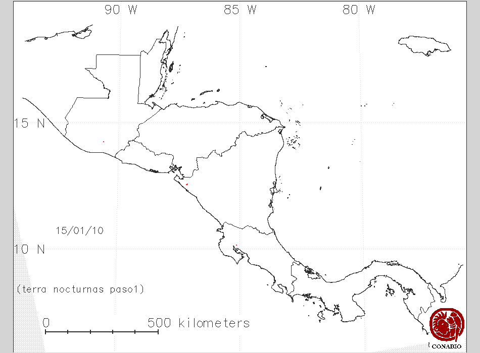 Se considera como punto de calor al elemento espacial mínimo de la imagen (pixel) que reporta una temperatura elevada. Para las imágenes diurnas la temperatura mínima considera es de 42C y para las imágenes nocturnas es de 25C. |