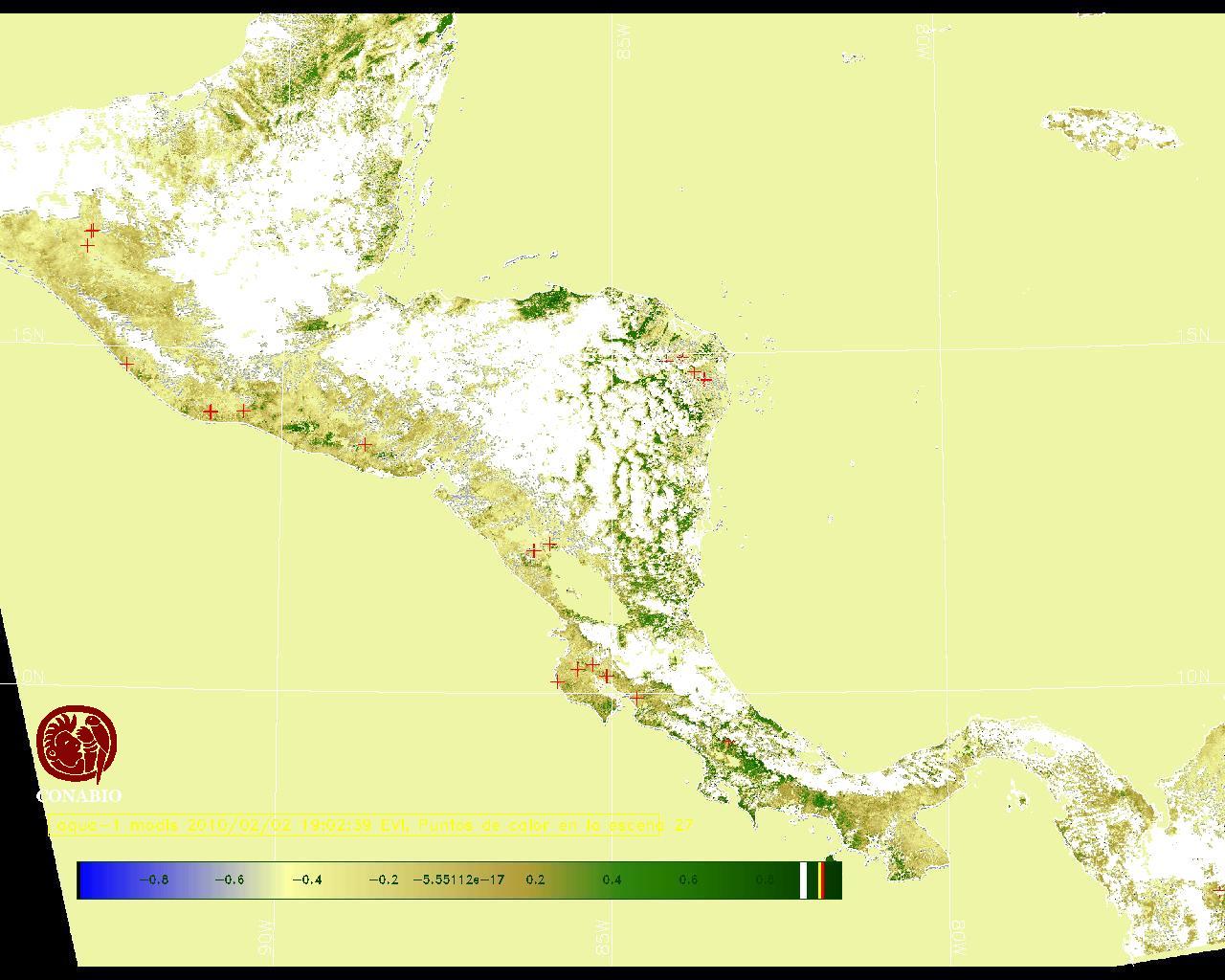 Los valores del índice van de -1 a 1, entre más cercano al valor 1 la vegetación presenta mayor vigor. Los índices de vegetación son utilizados para conocer el comportamiento de la vegetación tanto espacial como temporal. |