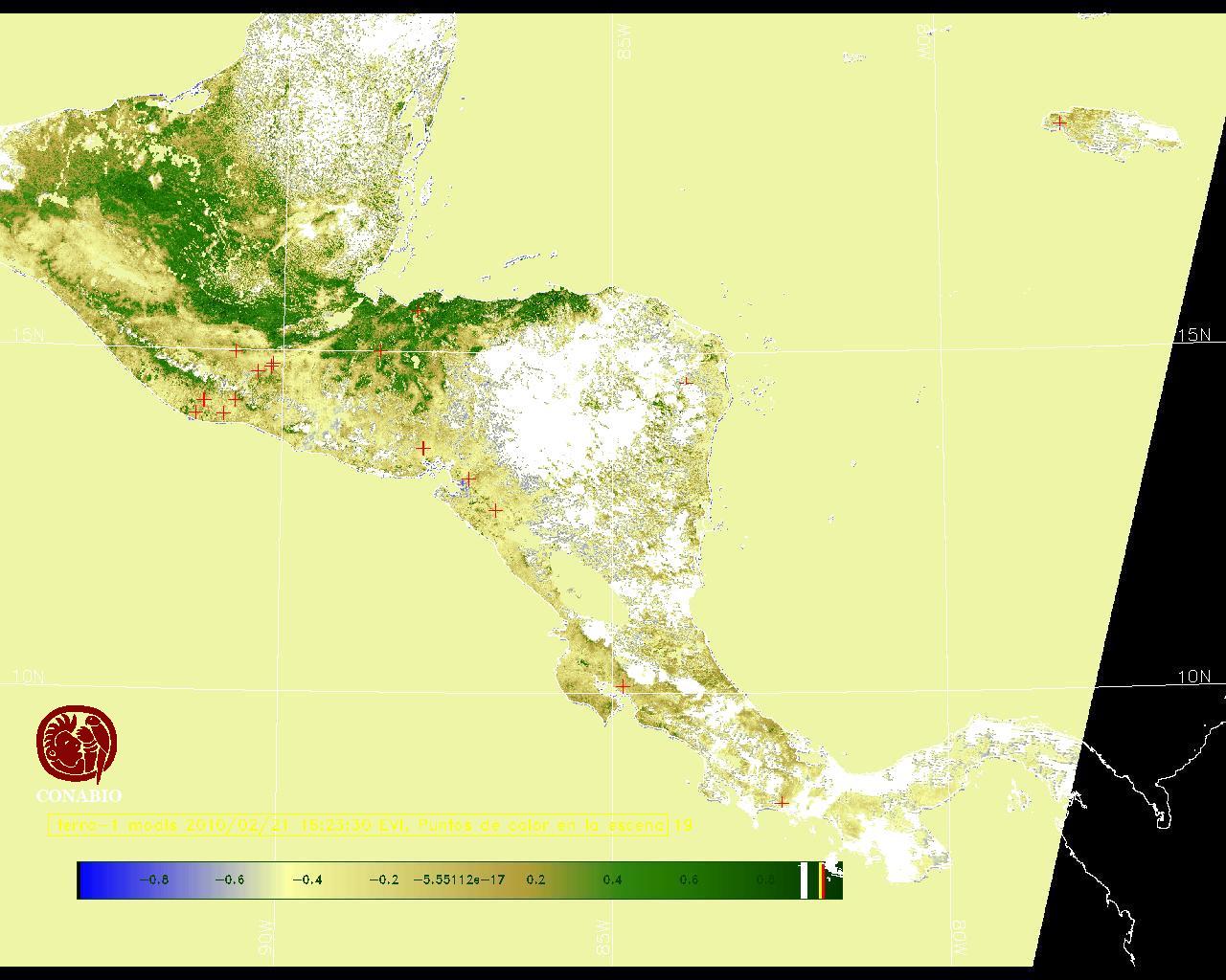 Se considera como punto de calor al elemento espacial mínimo de la imagen (pixel) que reporta una temperatura elevada. Para las imágenes diurnas la temperatura mínima considera es de 42C y para las imágenes nocturnas es de 25C. |