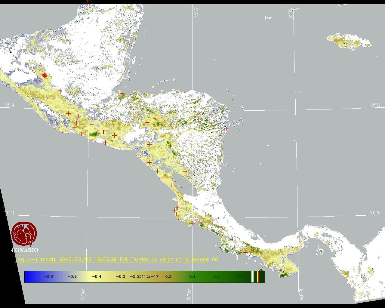 Se considera como punto de calor al elemento espacial mínimo de la imagen (pixel) que reporta una temperatura elevada. Para las imágenes diurnas la temperatura mínima considera es de 42C y para las imágenes nocturnas es de 25C. |