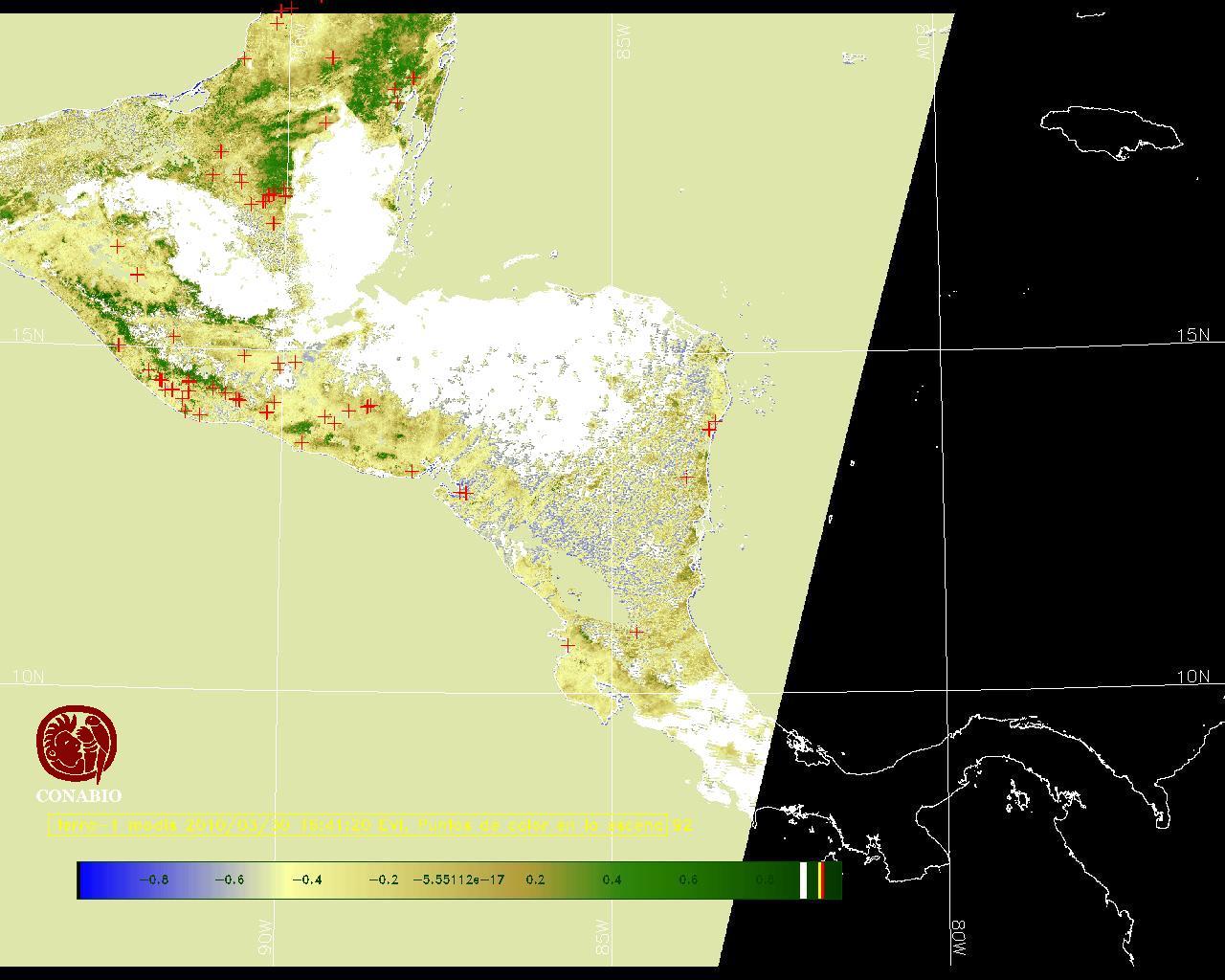 Los valores del índice van de -1 a 1, entre más cercano al valor 1 la vegetación presenta mayor vigor. Los índices de vegetación son utilizados para conocer el comportamiento de la vegetación tanto espacial como temporal. |
