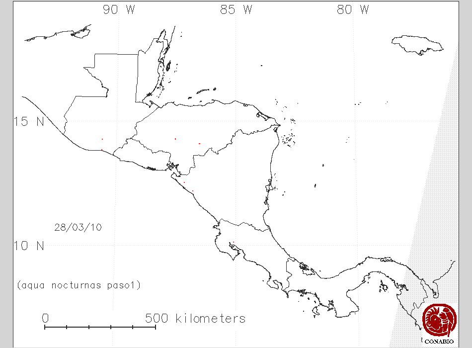 Se considera como punto de calor al elemento espacial mínimo de la imagen (pixel) que reporta una temperatura elevada. Para las imágenes diurnas la temperatura mínima considera es de 42C y para las imágenes nocturnas es de 25C. |