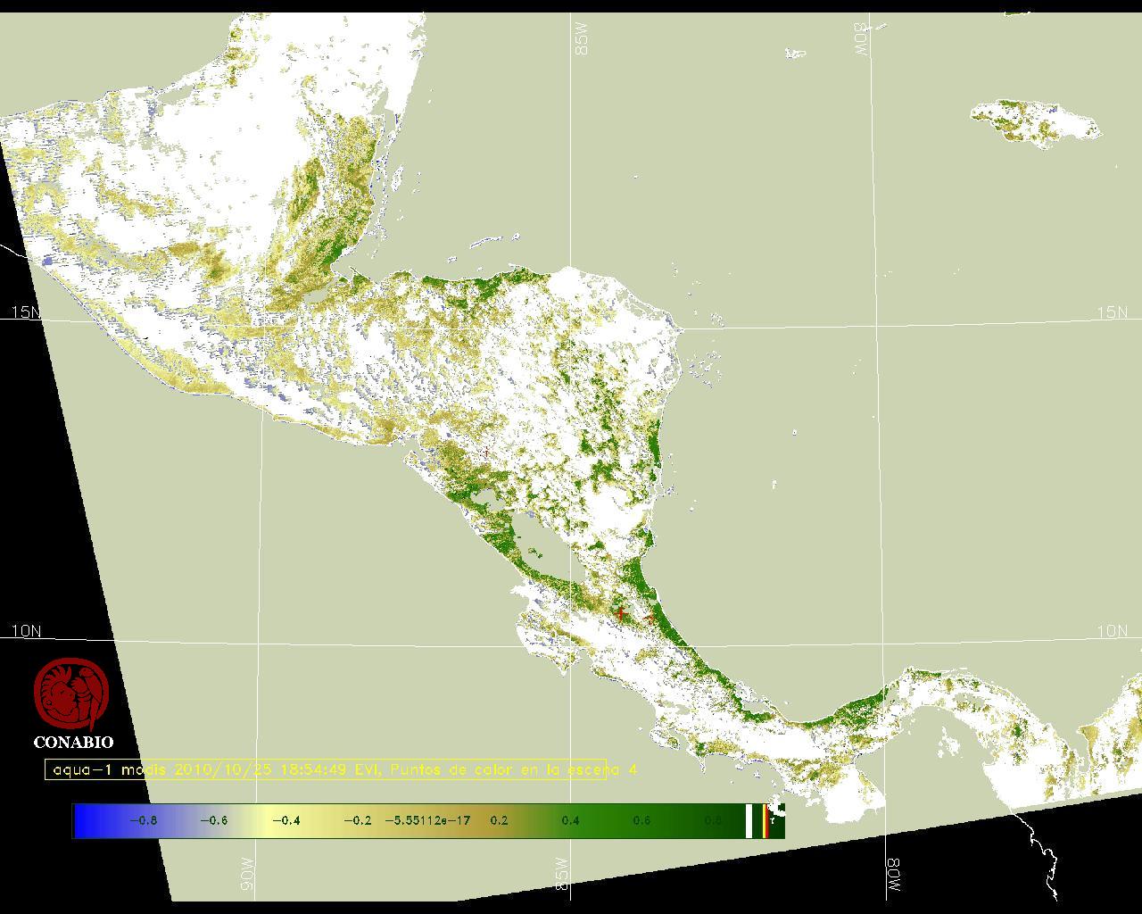 Se considera como punto de calor al elemento espacial mínimo de la imagen (pixel) que reporta una temperatura elevada. Para las imágenes diurnas la temperatura mínima considera es de 42C y para las imágenes nocturnas es de 25C. |