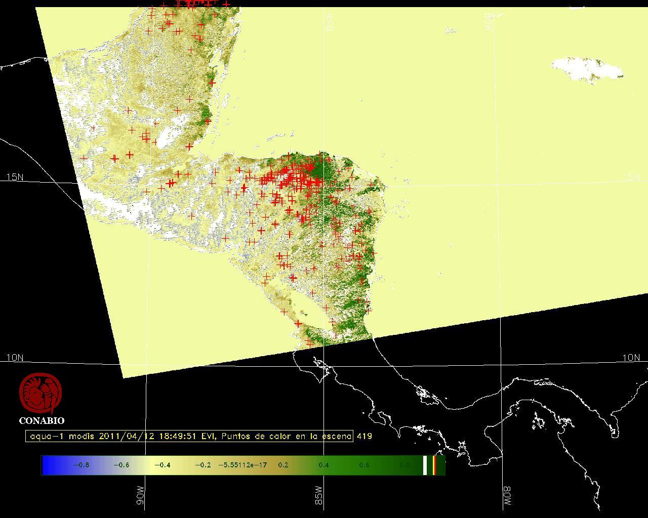 Se considera como punto de calor al elemento espacial mínimo de la imagen (pixel) que reporta una temperatura elevada. Para las imágenes diurnas la temperatura mínima considera es de 42C y para las imágenes nocturnas es de 25C. |