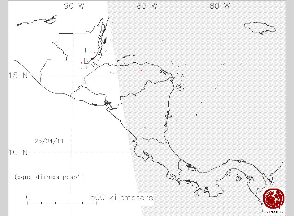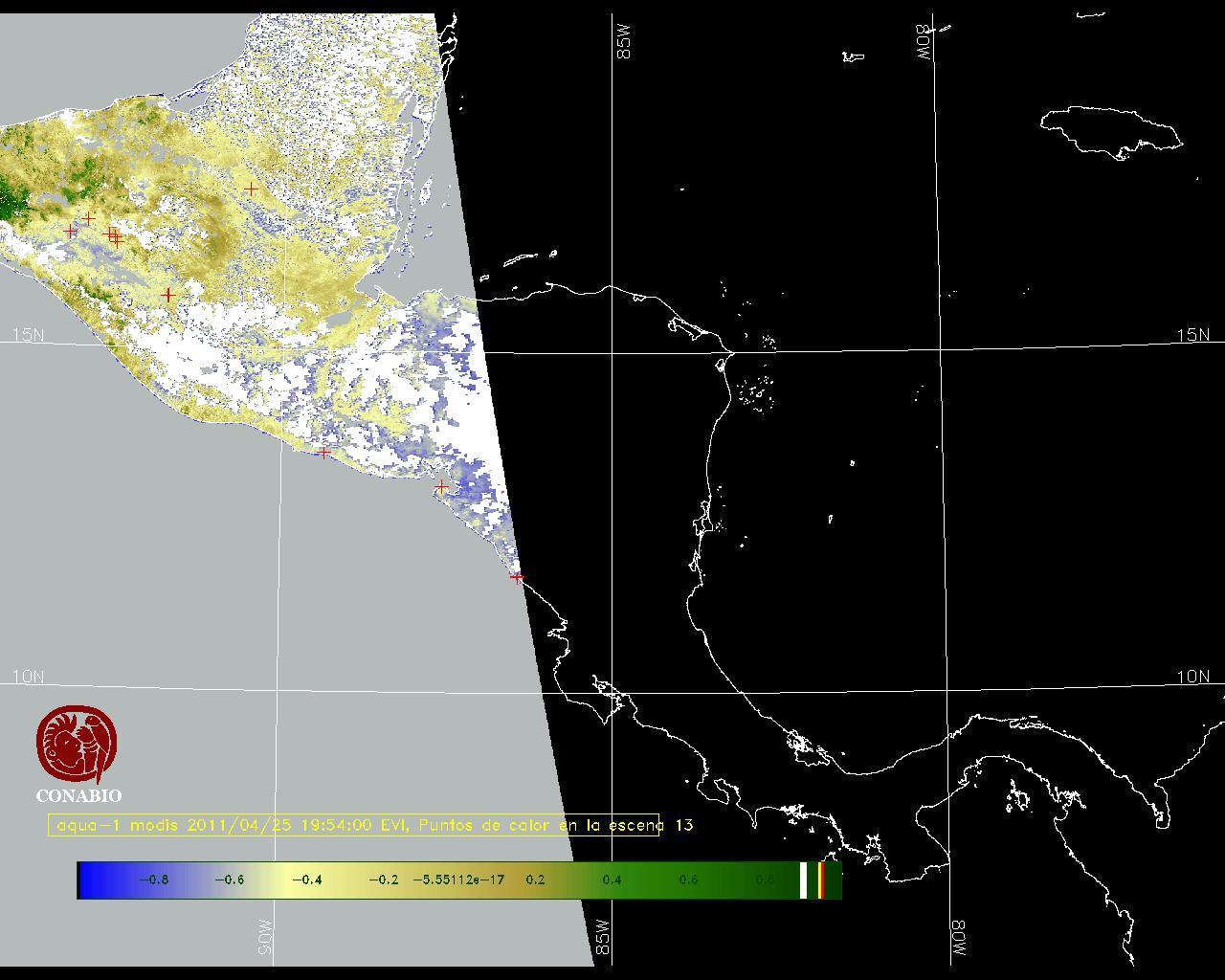 Se considera como punto de calor al elemento espacial mínimo de la imagen (pixel) que reporta una temperatura elevada. Para las imágenes diurnas la temperatura mínima considera es de 42C y para las imágenes nocturnas es de 25C. |