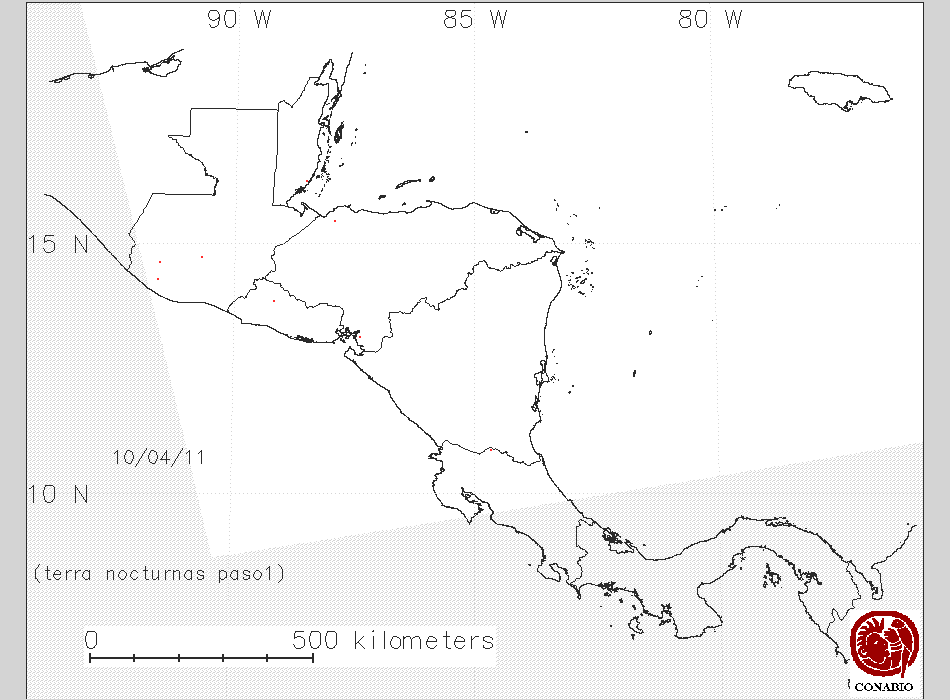 Se considera como punto de calor al elemento espacial mínimo de la imagen (pixel) que reporta una temperatura elevada. Para las imágenes diurnas la temperatura mínima considera es de 42C y para las imágenes nocturnas es de 25C. |