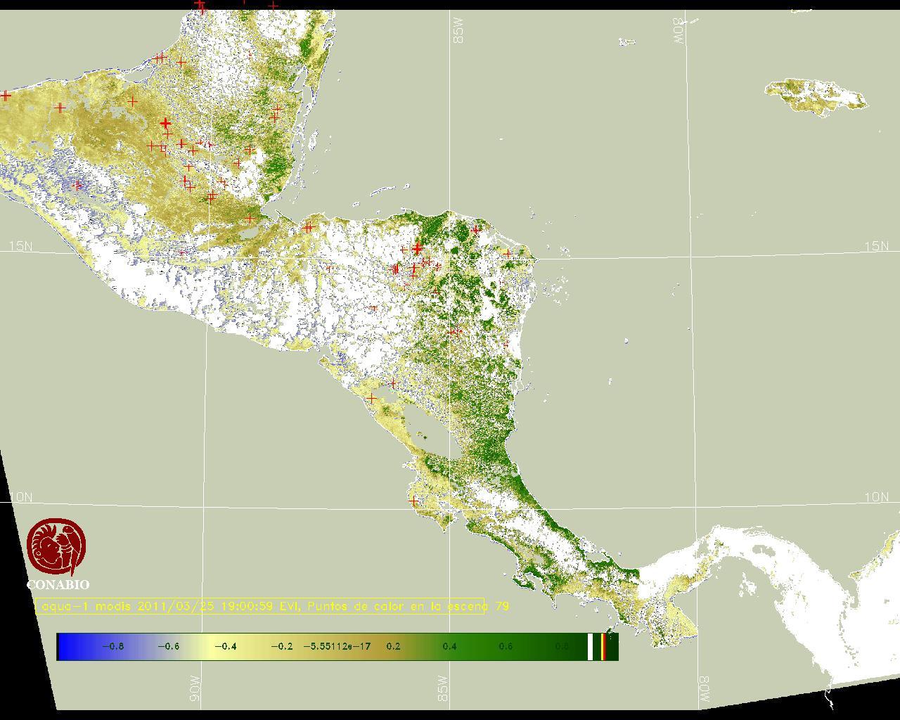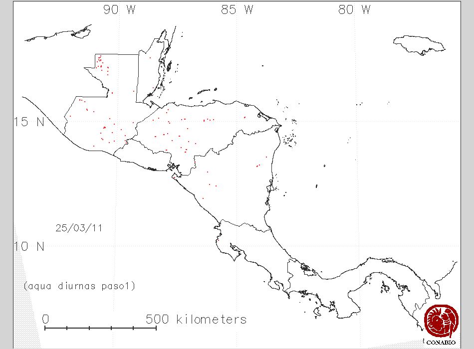 Se considera como punto de calor al elemento espacial mínimo de la imagen (pixel) que reporta una temperatura elevada. Para las imágenes diurnas la temperatura mínima considera es de 42C y para las imágenes nocturnas es de 25C. |
