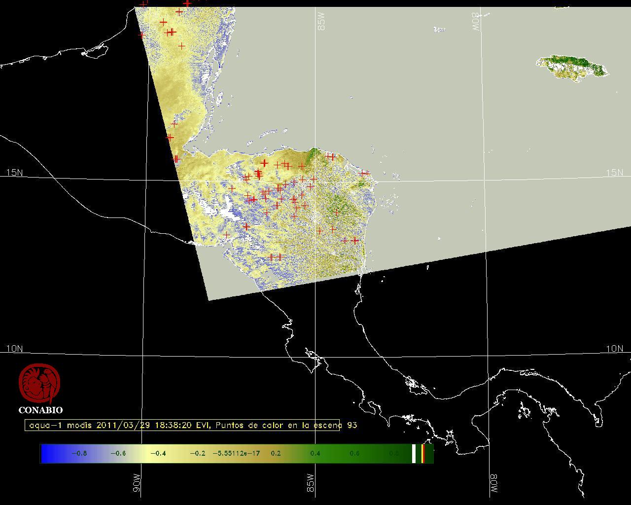 Se considera como punto de calor al elemento espacial mínimo de la imagen (pixel) que reporta una temperatura elevada. Para las imágenes diurnas la temperatura mínima considera es de 42C y para las imágenes nocturnas es de 25C. |