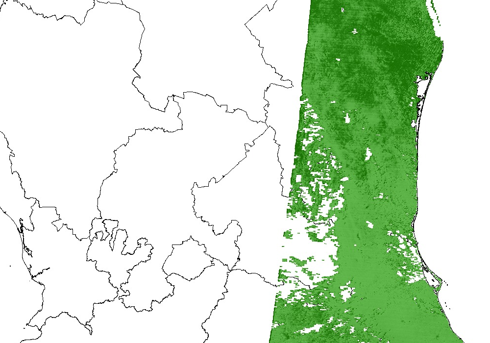 Los valores del índice van de -1 a 1, entre más cercano al valor 1 la vegetación presenta mayor vigor. Los índices de vegetación son utilizados para conocer el comportamiento de la vegetación tanto espacial como temporal. |