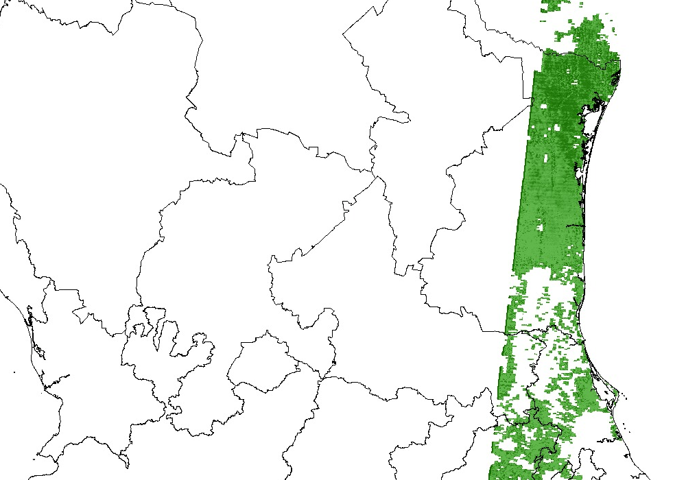 | Indice | Total de pixeles | Longitud | Latitud | Tipo de Vegetación | Municipio / Departamento |