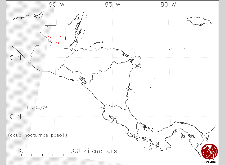 Se considera como punto de calor al elemento espacial mínimo de la imagen (pixel) que reporta una temperatura elevada. Para las imágenes diurnas la temperatura mínima considera es de 42°C y para las imágenes nocturnas es de 25°C. |