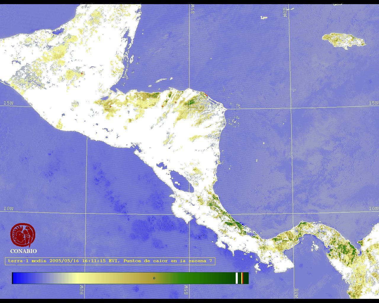 Se considera como punto de calor al elemento espacial mínimo de la imagen (pixel) que reporta una temperatura elevada. Para las imágenes diurnas la temperatura mínima considera es de 42°C y para las imágenes nocturnas es de 25°C. |