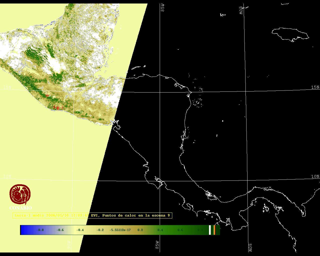 Se considera como punto de calor al elemento espacial mínimo de la imagen (pixel) que reporta una temperatura elevada. Para las imágenes diurnas la temperatura mínima considera es de 42°C y para las imágenes nocturnas es de 25°C. |
