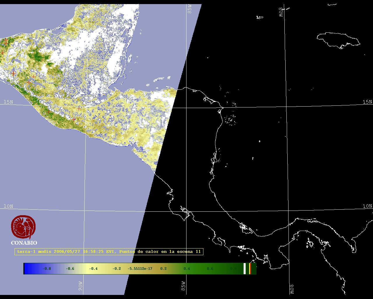 Se considera como punto de calor al elemento espacial mínimo de la imagen (pixel) que reporta una temperatura elevada. Para las imágenes diurnas la temperatura mínima considera es de 42C y para las imágenes nocturnas es de 25C. |