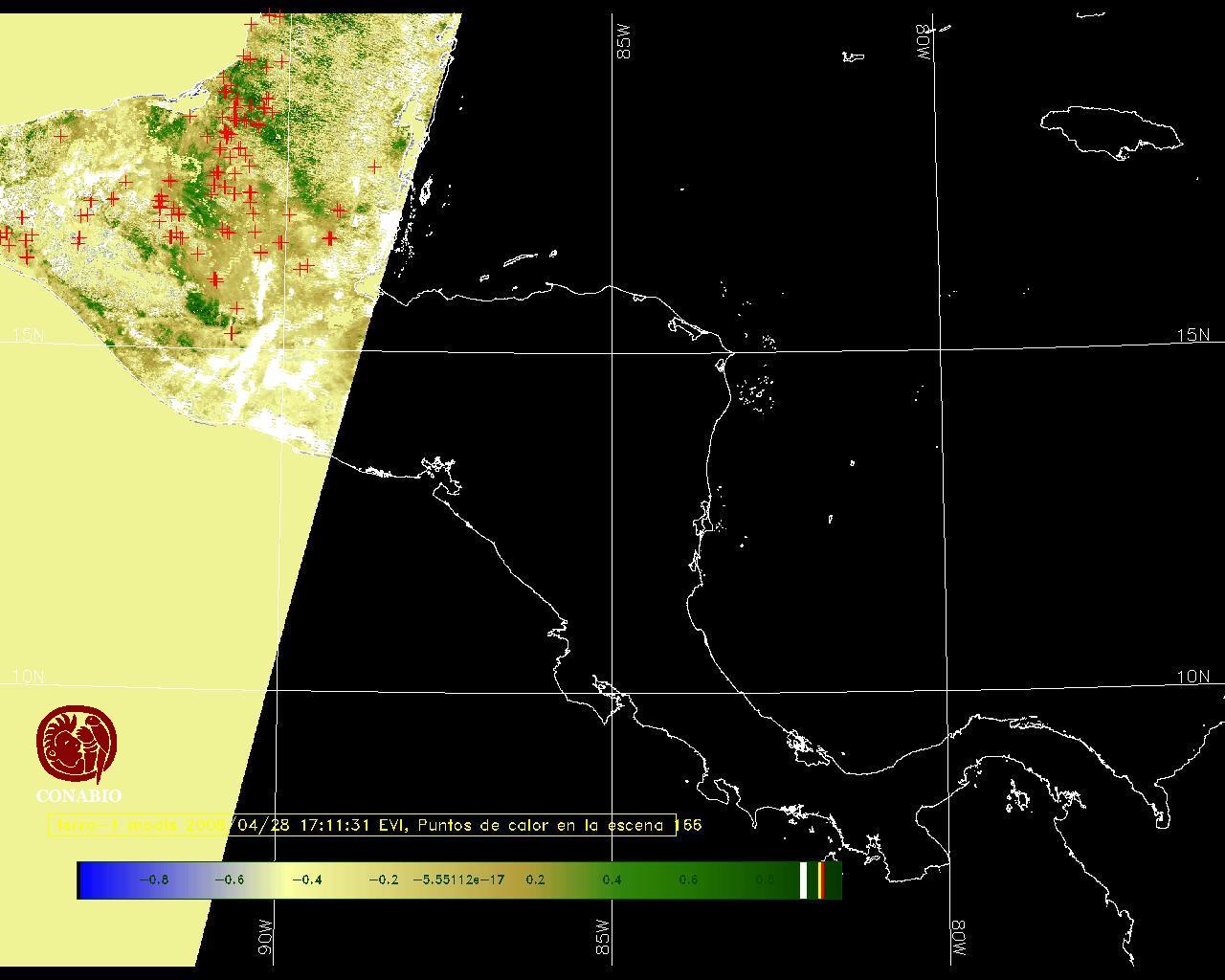 Se considera como punto de calor al elemento espacial mínimo de la imagen (pixel) que reporta una temperatura elevada. Para las imágenes diurnas la temperatura mínima considera es de 42C y para las imágenes nocturnas es de 25C. |